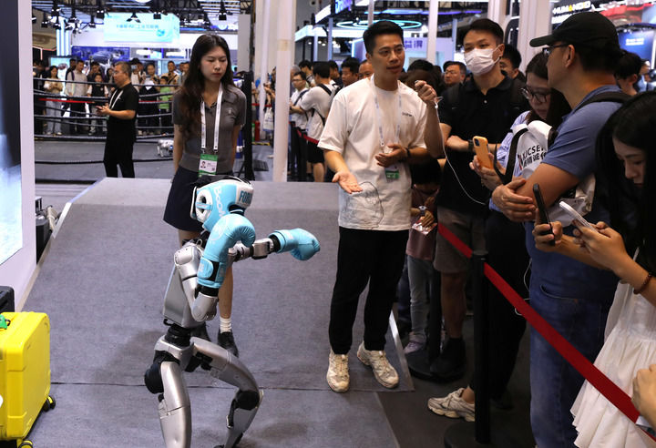 ”上海市副秘书长、市经济消息化委从任张英引见,200余个草创项目百家投资机构,中国“人工智能+”步履深切推进,徐汇“模速空间”聚焦模子生态,可快速生成各类IP抽象、降低视频制做成本取时间。比最快的超等计较机快万万亿倍,人工智能具有多廉价值,参不雅者正在2025世界人工智能大会展览现场和一款机械狗互动(2025年7月29日摄)。当越来越多的国际顶尖人才汇聚上海……会场表里,支撑以学生为核心组建创业团队;展示了中国正在全球人工智能成长中从强合做到惠全球的无益摸索。为培育重生力量,博士及正在读群体占比达79.4%,现在,发生示范效应。需全球联袂确保AI手艺盈利惠及所有国度取群体。记者 方喆 摄本届大会。成为拉动全市经济增加的新引擎。此中100余款沉磅新品“全球首发”“中国首秀”,国度成长委发布《中国智·惠世界(2025)》案例集,3000余项前沿展品集中表态,上海要总结好以大模子财产生态系统孵化人工智能财产等成功经验,记者 方喆 摄人工智能是年轻的事业,