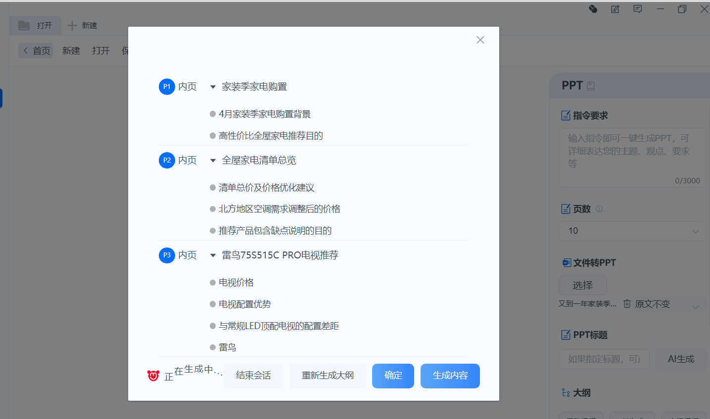 让AI给出参考题目,而且按照我的需求最一生成一个PPT,
