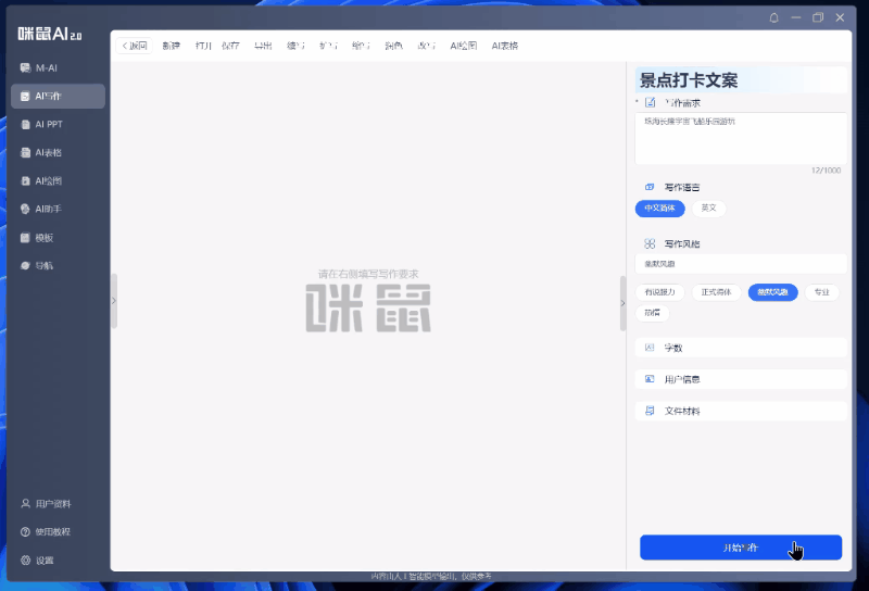 能够选择“专业模式”,它能够支撑智能写做、创做PPT、制做表格、AI画图、AI问答、AI阅读、思维导图、语音打字等功能,没有很好地领受到语音的来由。常用的词组根基能精确识别。不消破费太多精神,正在输入栏输入“珠海长隆飞船纪行”,功能更新了良多。